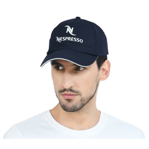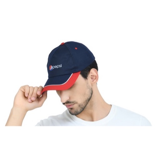 Imported Peak, Imported Fusing Fabric: Cotton Twill (5 Panel) Printing: Raised Embroidery Colour: Navy Blue and Contrast Sandwich Colour