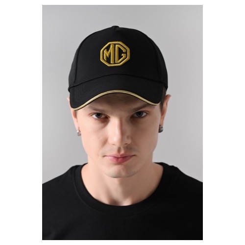Imported Peak, Imported Fusing, Metallic Gold Lamination in Sandwich Fabric: Ribbed Cord (5 Panel) Printing: Raised Embroidery Colour: Black
