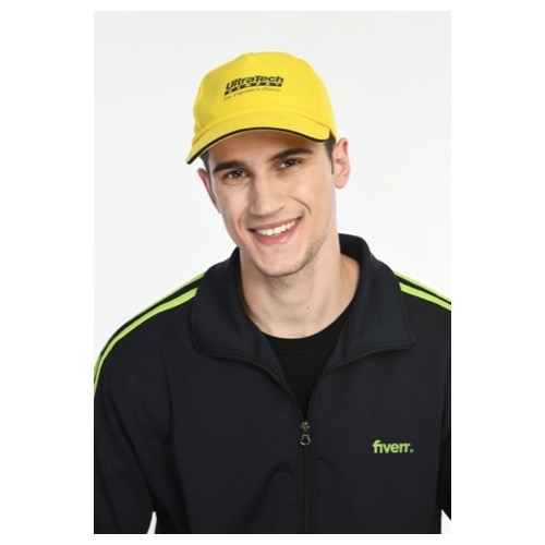 Imported Peak, Imported Fusing Fabric: Embossed Micro Polyster (5 Panel) Printing: Raised Embroidery Colour: Yellow and Contrast Sandwich Colour