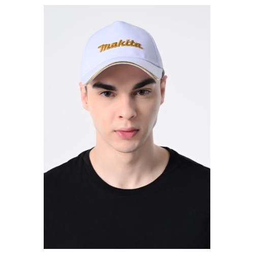 Imported Peak, Imported Fusing, Metallic Gold Lamination in Sandwich Fabric: Ribbed Cord (5 Panel) Printing: Raised Embroidery Colour: White