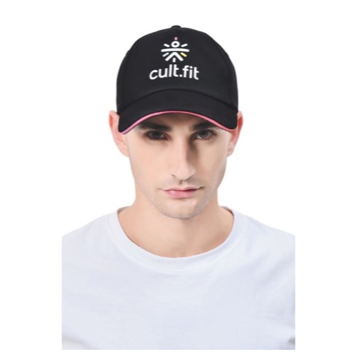 Imported Peak, Imported Fusing, Visor Cut Contrast Fabric: Cross Knit SAP Matte (5 Panel) Printing: Digital Transfer Colour: Black