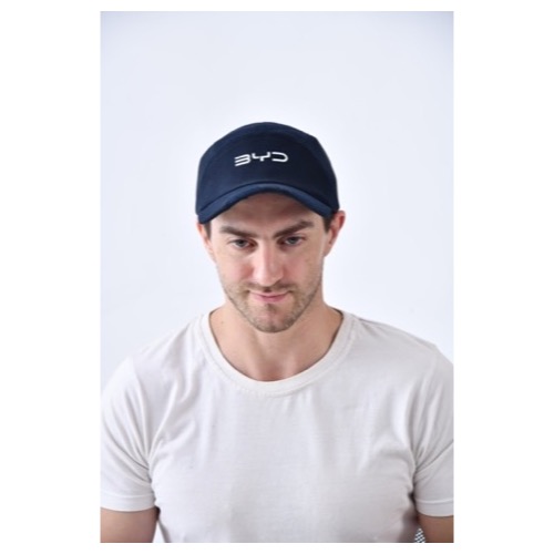 Imported Peak, Imported Fusing, Visor Cut Contrast Fabric: Cross Knit SAP Matte (5 Panel) Printing: Digital Transfer Colour: Navy Blue