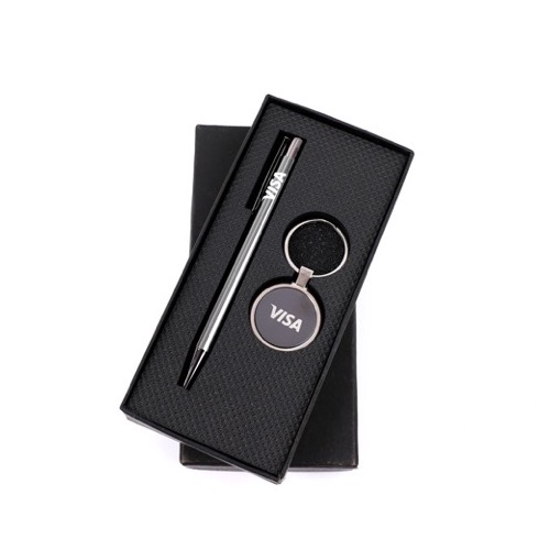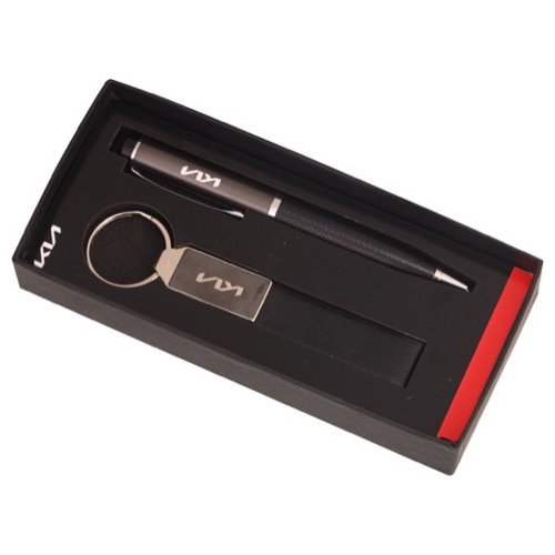 Textured Eva Box Metal Pen with Metal Keychian