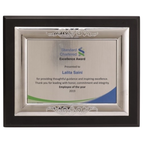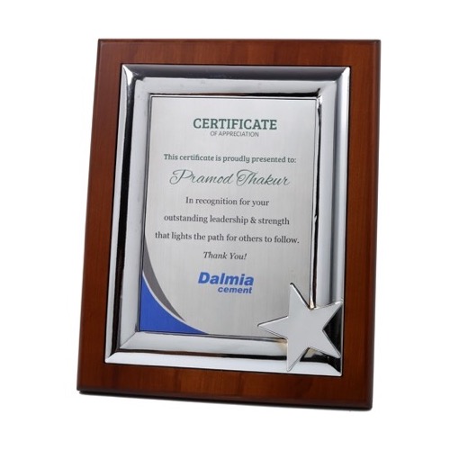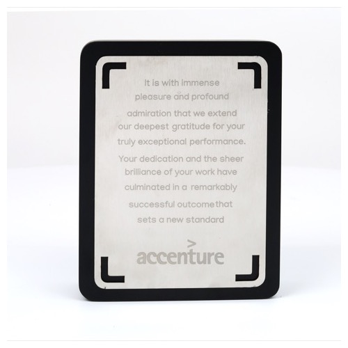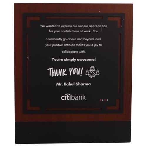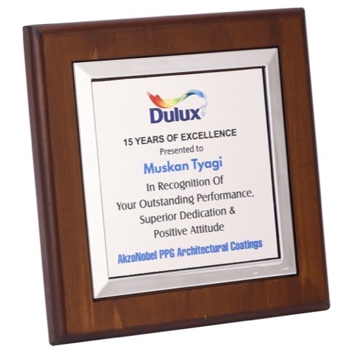 Size: 9.5" x 10" Engraving Size: 3.5" x 0.5" / 3.25" x 0.75" Gross Weight: 590 gms Net Weight: 490 gms