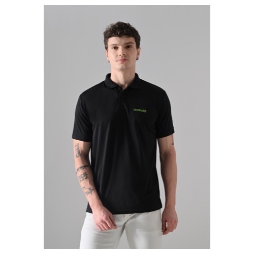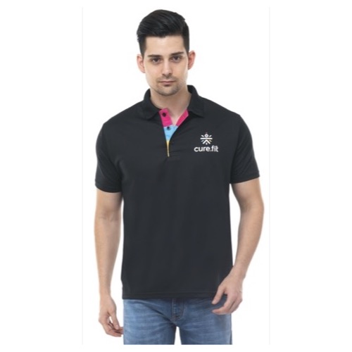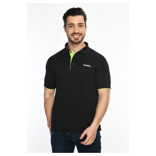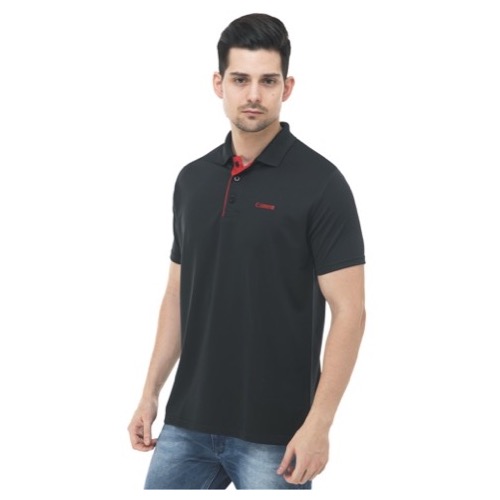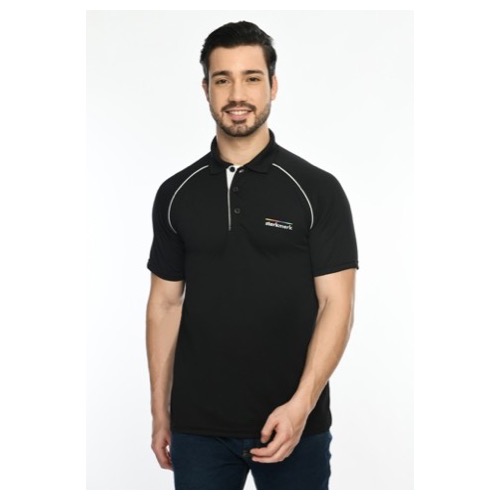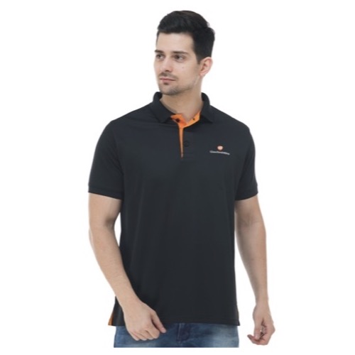 Polo with Contrast Bone and Sleeve Piping Fabric: Premium Structured DC Knit Base Colour: Black Features: Sweat Absorbent, Contrast Band