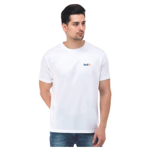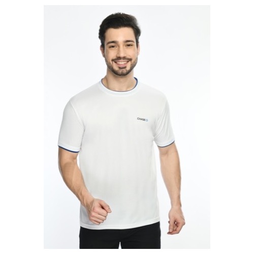 Round Neck with Contrast Sleeve Piping Fabric: Dot Knit Mesh Base Colour: White Features: Sweat Absorbent, Contrast Band