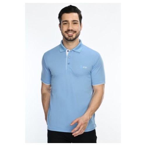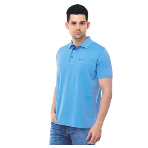 Contrast Bone and Sleeve Piping Fabric: Dot Knit Mesh (Eco Polo) Base Colour: SKy Blue Features: Sweat Absorbent, Contrast Band