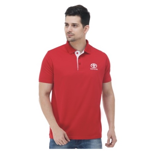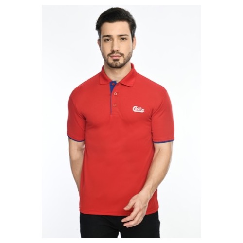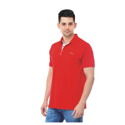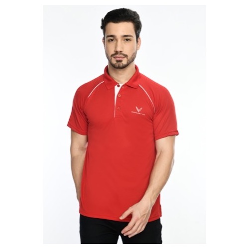 Contrast Bone and Sleeve Piping Fabric: Dot Knit Mesh (Eco Polo) Base Colour: Red Features: Sweat Absorbent, Contrast Band