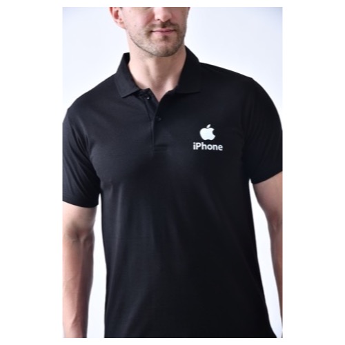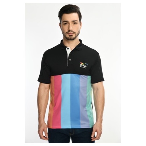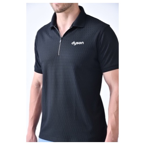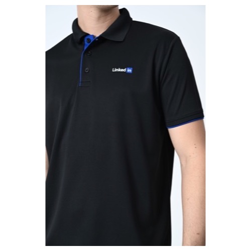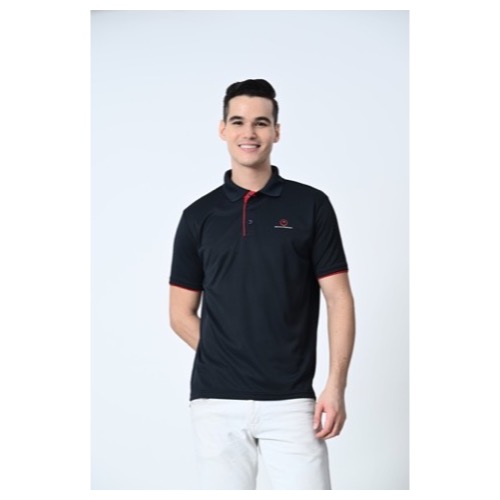 Contrast Bone and Sleeve Piping Fabric: Dot Knit Mesh (Eco Polo) Base Colour: Black Features: Sweat Absorbent, Contrast Band