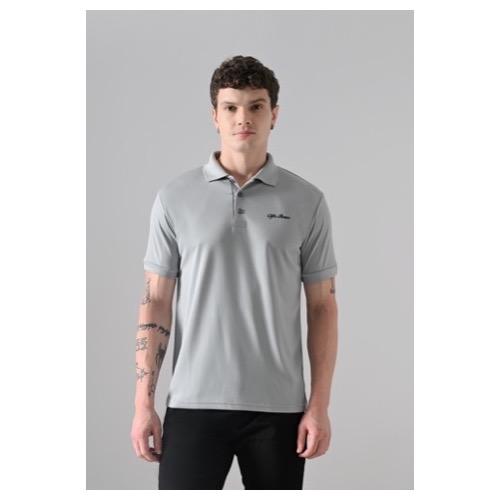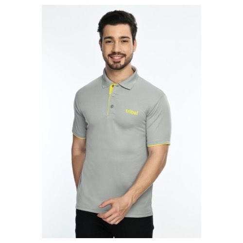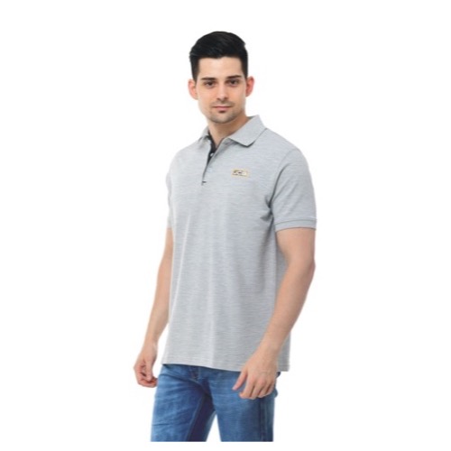 Polo with Contrast Bone and Sleeve Piping Fabric: Premium Structured DC Knit Base Colour: Grey Features: Sweat Absorbent, Contrast Band