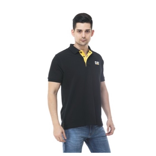 Verbose Range Polo Fabric: Poly Cotton Matte Base Colour: Black Bone Colour: Yellow Features: Sweat Absorbent, Contrast Band