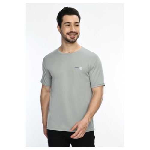 Round Neck with Contrast Sleeve Piping Fabric: Dot Knit Mesh Base Colour: Grey Features: Sweat Absorbent, Contrast Band