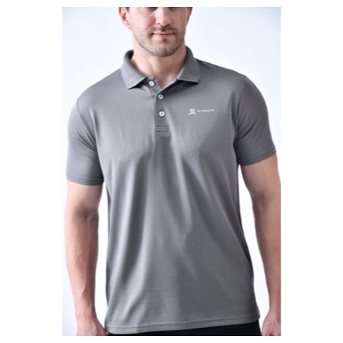 Contrast Bone and Sleeve Piping Fabric: Dot Knit Mesh (Eco Polo) Base Colour: Grey Features: Sweat Absorbent, Contrast Band