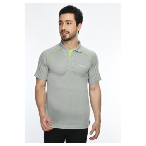 Contrast Bone and 2 Tone Sleeve End Fabric: Dot Knit Mesh (Eco Polo) Base Colour: Grey Features: Sweat Absorbent, Contrast Band