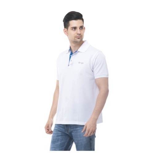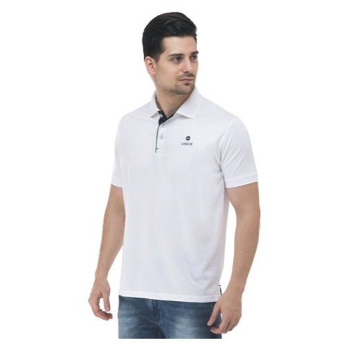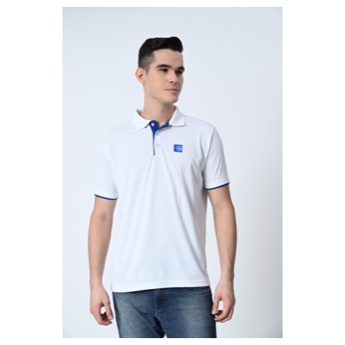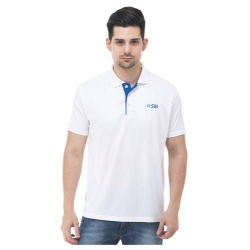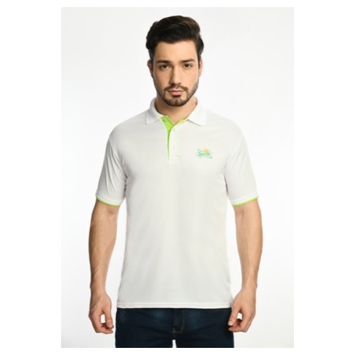 Polo with Contrast Bone and Sleeve Piping Fabric: Premium Structured DC Knit Base Colour: White Features: Sweat Absorbent, Contrast Band