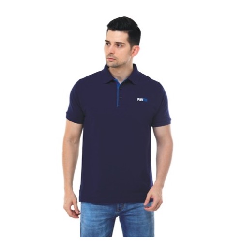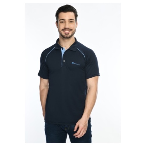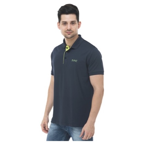 Contrast Bone and Sleeve Piping Fabric: Dot Knit Mesh (Eco Polo) Base Colour: Navy Blue Features: Sweat Absorbent, Contrast Band