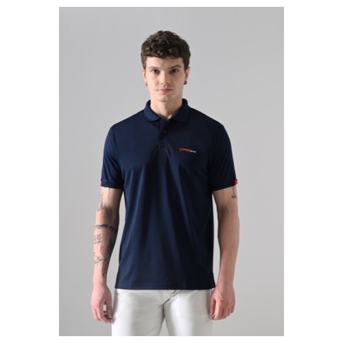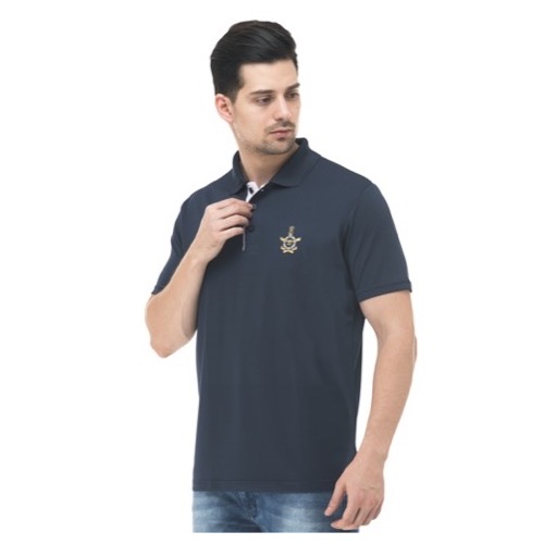 Polo with Contrast Bone and Sleeve Piping Fabric: Premium Structured DC Knit Base Colour: Navy Blue Features: Sweat Absorbent, Contrast Band