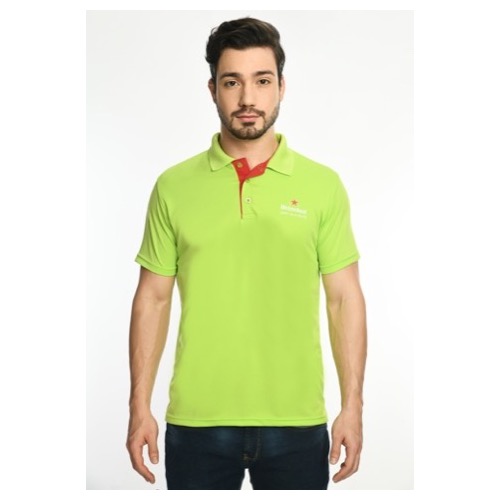 Polo Eco Fabric: Dot Knit Mesh Base Colour: Nokia Green Bone Colour: Red Features: Sweat Absorbent, Contrast Band