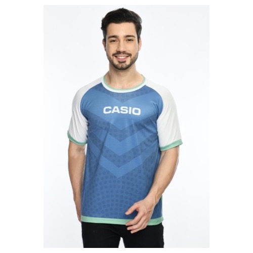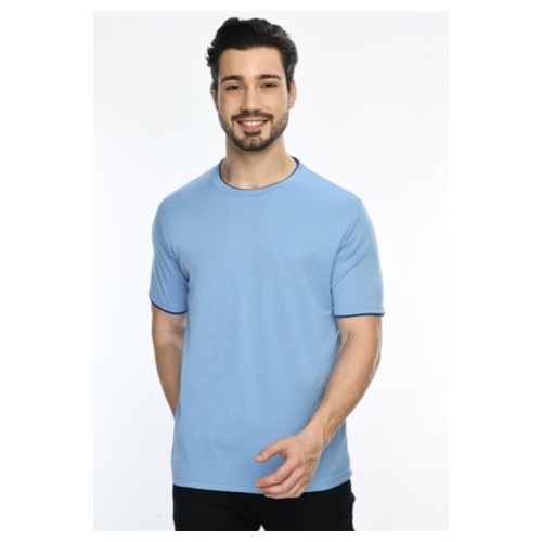 Round Neck with Contrast Sleeve Piping Fabric: Dot Knit Mesh Base Colour: Sky Blue Features: Sweat Absorbent, Contrast Band