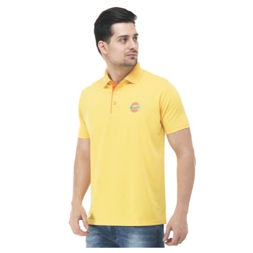 Polo Eco Fabric: Dot Knit Mesh Base Colour: Yellow Bone Colour: Orange Features: Sweat Absorbent, Contrast Band