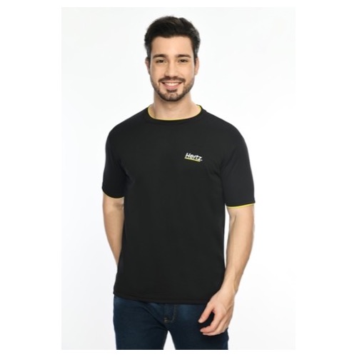 Round Neck with Contrast Sleeve Piping Fabric: Dot Knit Mesh Base Colour: Black Features: Sweat Absorbent, Contrast Band